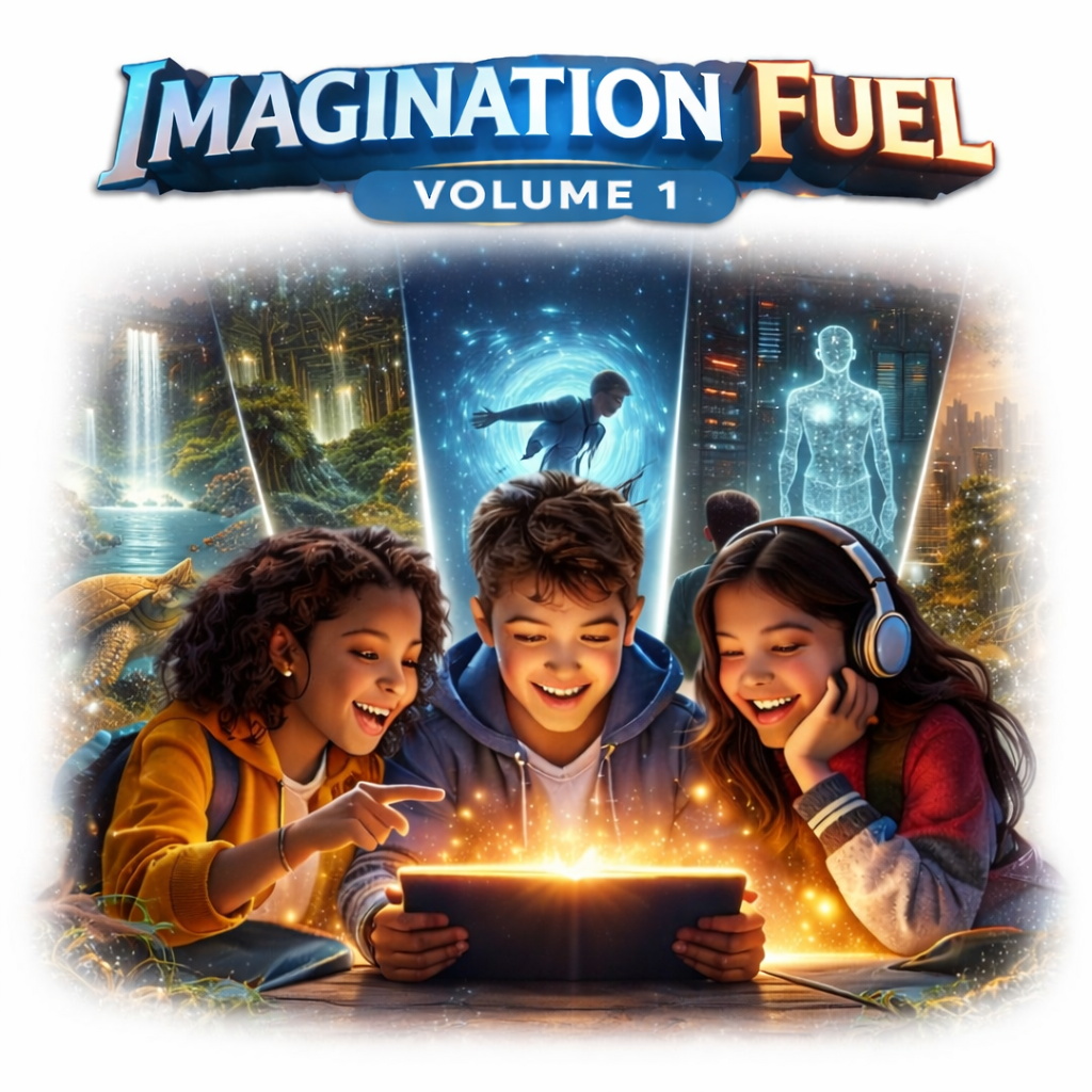 The Imagination Fuel Series includes 12 guided interactive stories designed to strengthen creativity, vocabulary, and written expression while making writing more engaging and enjoyable.